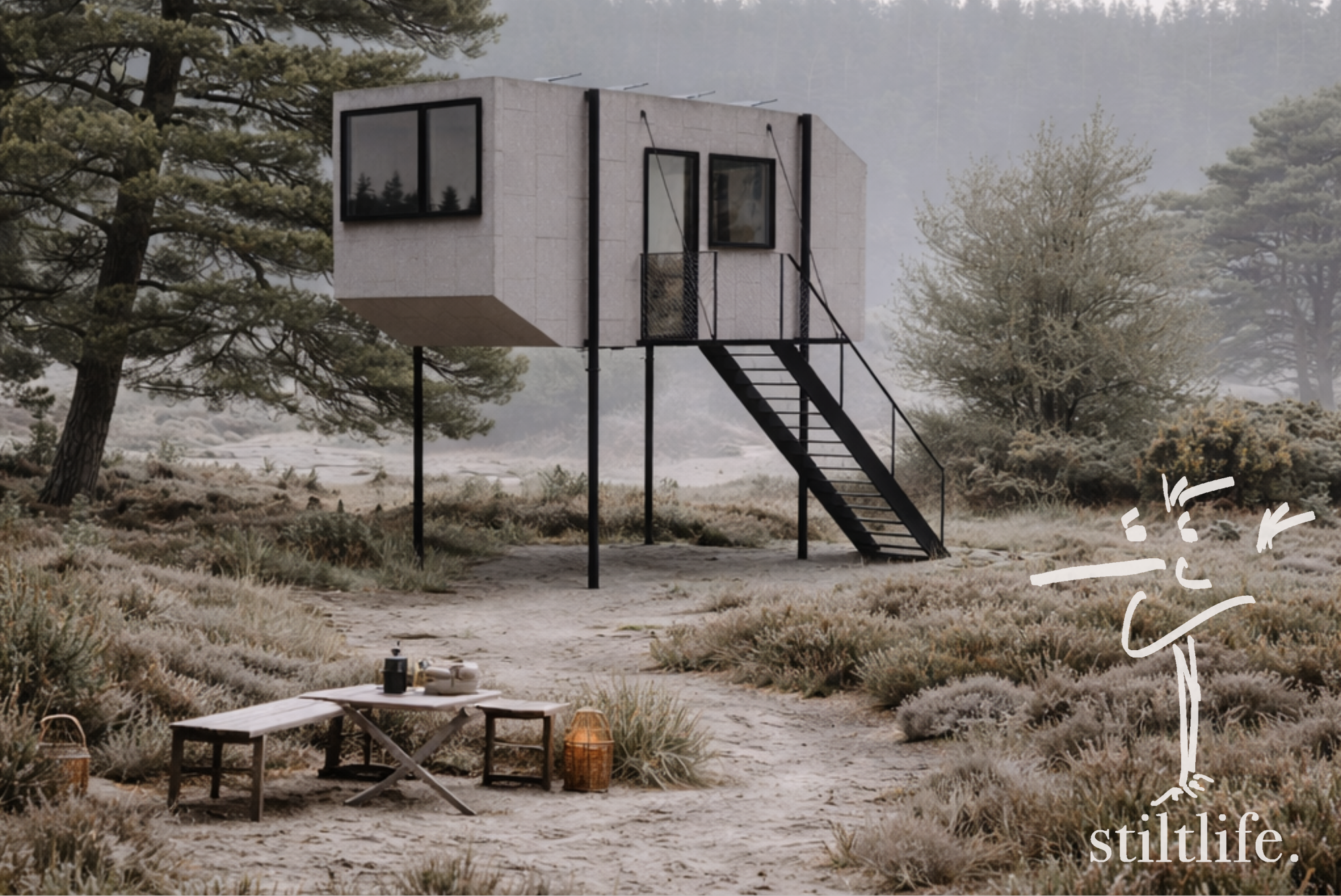 Stiltlife steht für eine widerstandsfähige, mobile Form des Wohnens auf Stelzen — entwickelt für eine Welt im Wandel und für Menschen, die Unabhängigkeit, Sicherheit und Nähe zur Landschaft neu denken möchten.